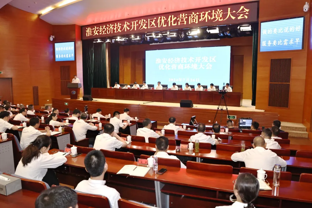 7月26日上午,淮安经济技术开发区召开二季度优化营商环境大会。市委常委、经开区党工委书记徐子佳出席会议并讲话。他强调,全区上下要把“做的要比说的好、服务要比需求早”的营商理念根植于心、外化于行,努力赢得企业群众的高度认可,持续擦亮营商环境的金字招牌!经开区党工委副书记、管委会副主任刘晓松主持会议。