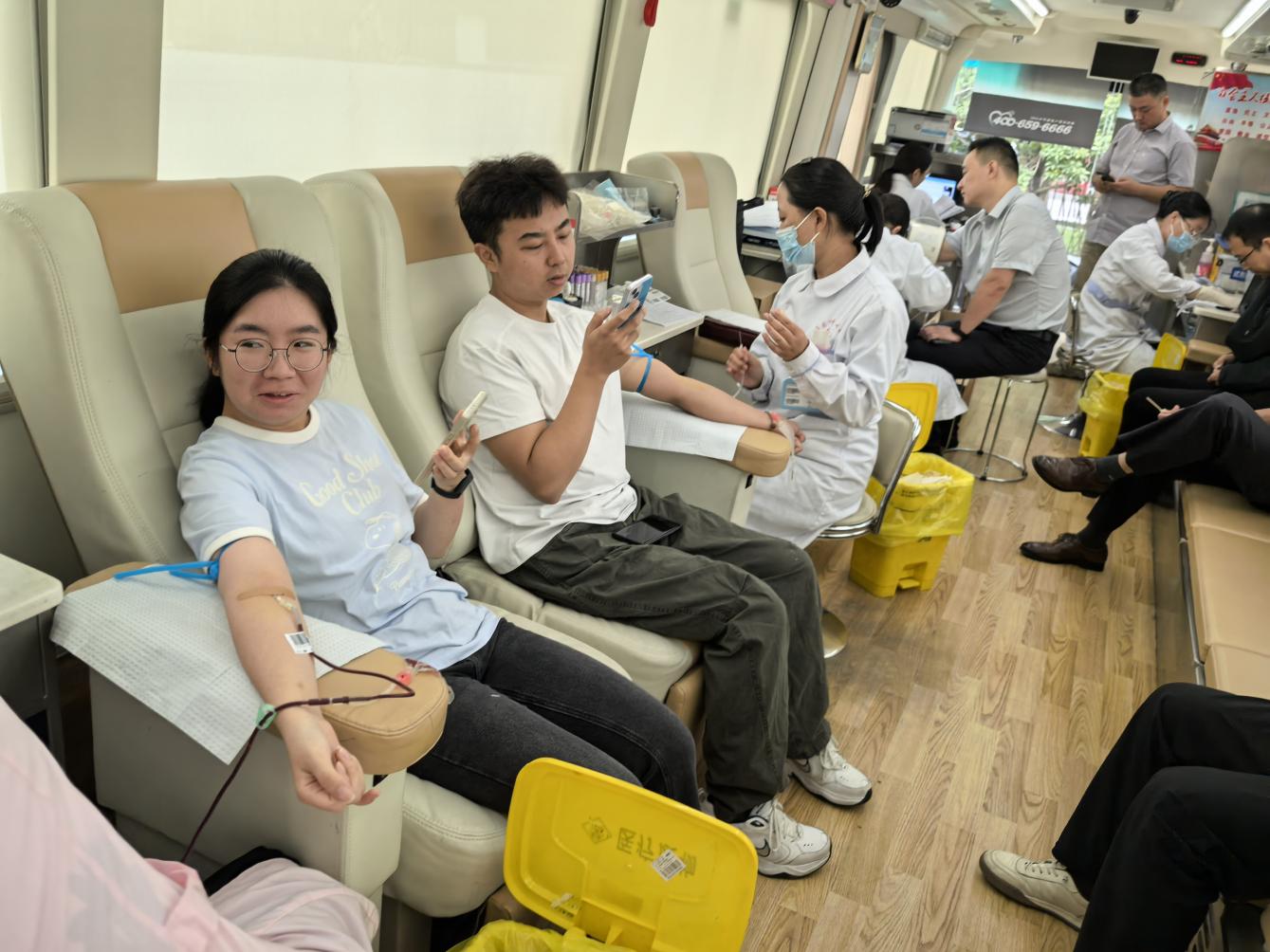 活动现场气氛温暖而庄重。一袋袋殷红的热血,不仅是生命的礼物、更是新港人社会责任与担当精神的生动写照。大家以实际行动践行“传递爱心,为生命续航”的公益理念,展现出高度的集体凝聚力与深厚的人文关怀。