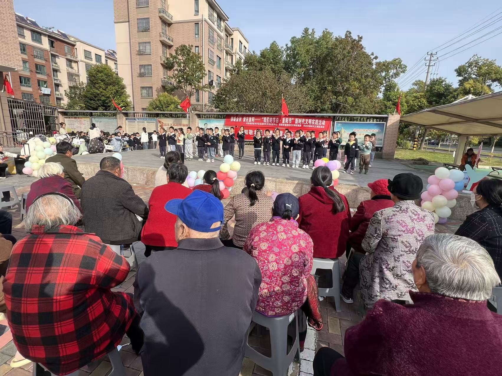 随后,淮安市通甫路幼儿园大班的小朋友们带来了精彩纷呈的节目表演。手势舞《把心到永远》、古诗朗诵《过故人庄》《九月九日忆山东兄弟》、儿歌《九九重阳送祝福》《重阳节》等节目轮番上演,孩子们用纯真的表演传递了对爷爷奶奶们的深深祝福。最后,全体大班幼儿合唱《中华孝道》,将现场气氛推向高潮。节目表演结束后,孩子们亲手将自己制作的手工贺卡、折纸作品等小礼物送到老人手中,一声声“爷爷好”“奶奶节日快乐”,让现场洋溢着浓浓的温情。