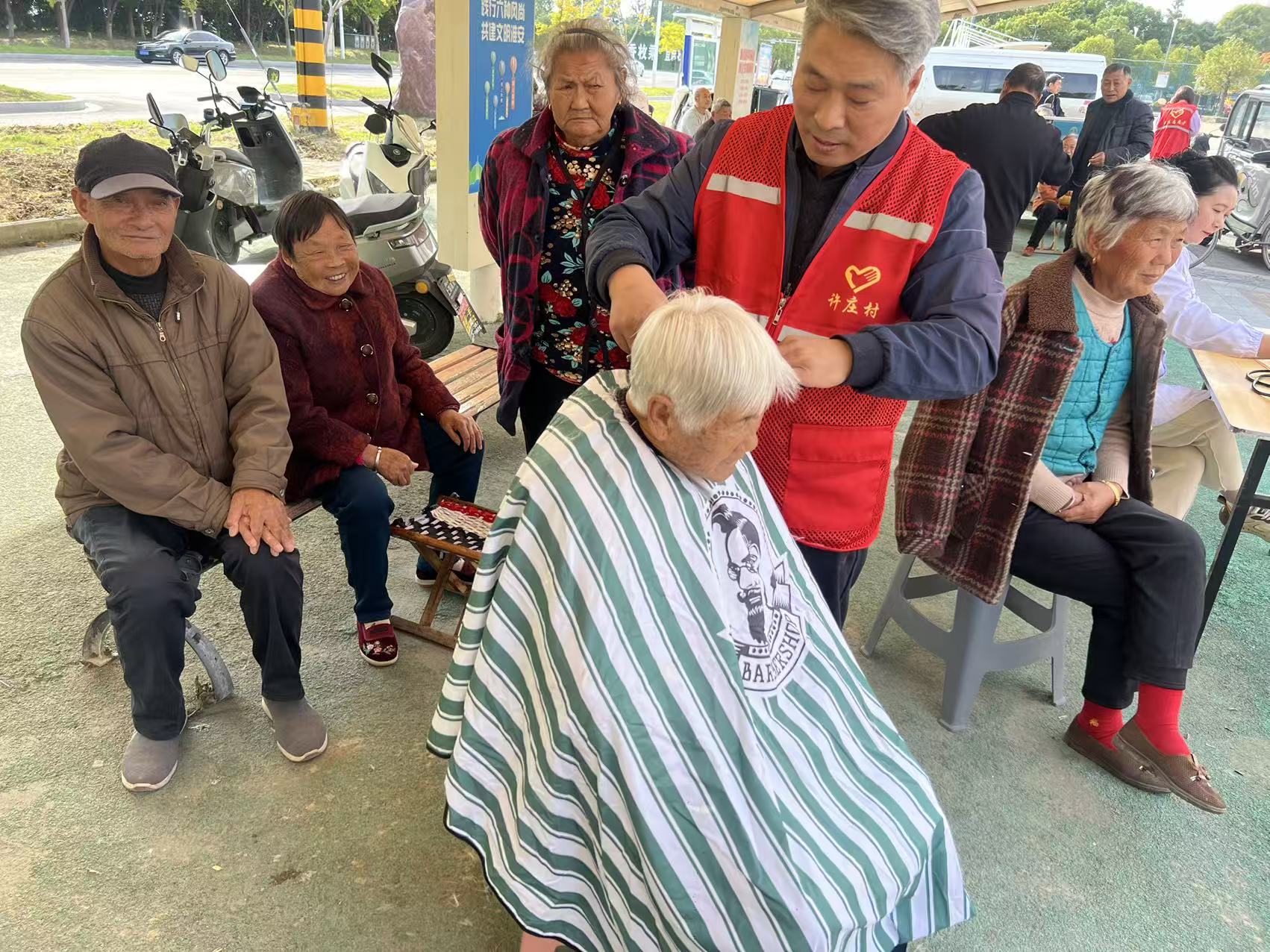 活动现场还设置了便民服务点,志愿者们为老人提供免费理发、修剪指甲等贴心服务,展现了邻里互助、文明友爱的社区风尚。除了现场服务,许庄村干部还带领志愿者开展暖心慰问活动,集中慰问了村里90岁以上的老年人,为他们送上米、面、油等生活物资,叮嘱他们注意添衣保暖,有困难及时向村委会反映。对行动不方便的老人进行了上门走访慰问和关心关爱。