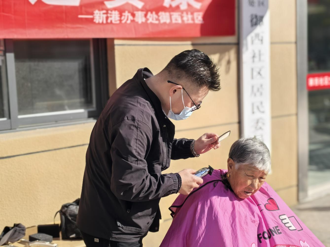 重阳敬老,情暖社区。为弘扬中华民族传统美德,10月29日,新港办事处御西社区在党群服务中心门口组织开展“社区暖重阳 理发送安康”爱心义剪活动,用实实在在的服务为社区老人送上节日关怀。