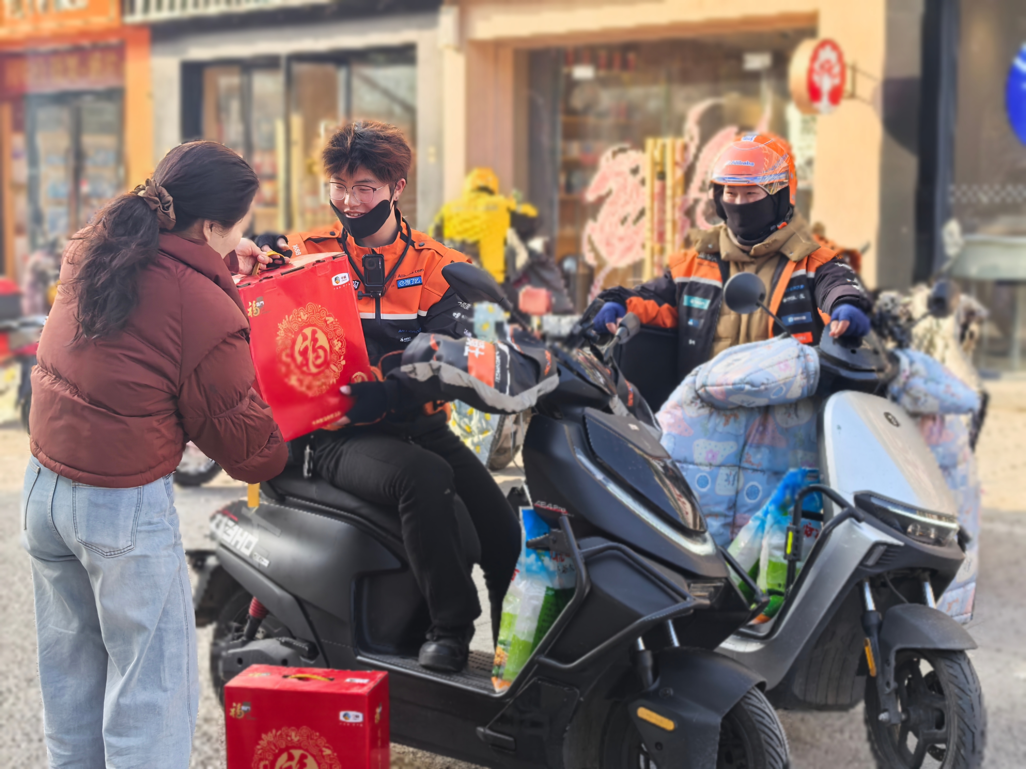 这份温暖不仅停留在驿站,更延伸到骑手们奔波的每一段路途。新春佳节期间,枚乘街道常态化开展暖“新”走访慰问活动,把党和政府的关怀与新春的美好祝福实实在在送到新就业群体的心坎上。街道工作人员为坚守岗位的外卖骑手送上新春礼包,一声声节日问候,一份份暖心关怀,让骑手们在寒冬里倍感温暖,在奔波中收获满满归属感。