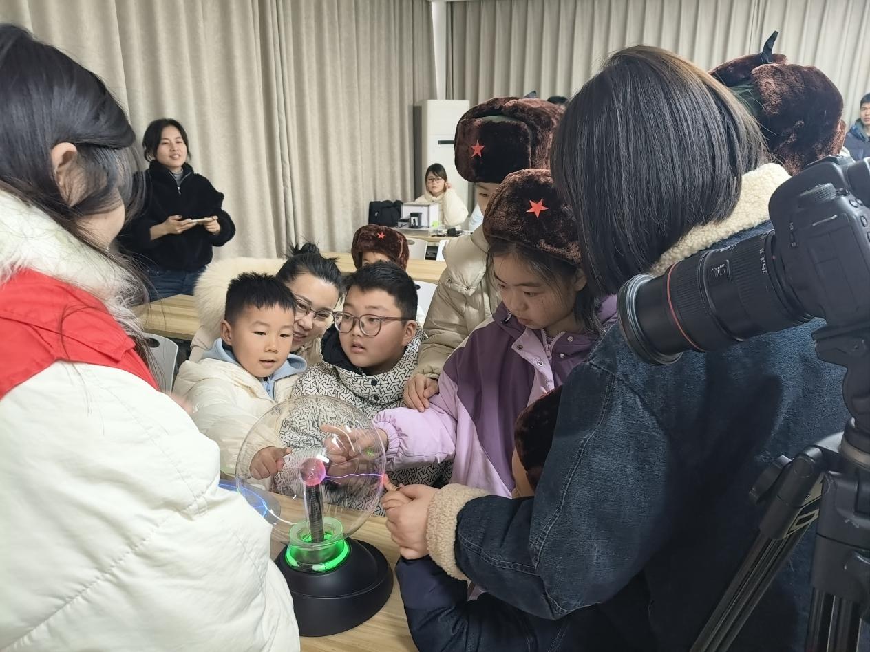 活动现场,志愿者们围绕学雷锋精神展开宣讲,讲述雷锋故事、分享志愿服务精神,引导青少年从小树立乐于助人、奉献社会的良好品质。随后,志愿者化身“科普老师”,带领大家开展一系列安全有趣的物理小实验:等离子球的静电吸附、光影的变化、大气压现象等,通过动手操作、观察现象、原理讲解的方式,把抽象的物理知识变得直观生动。