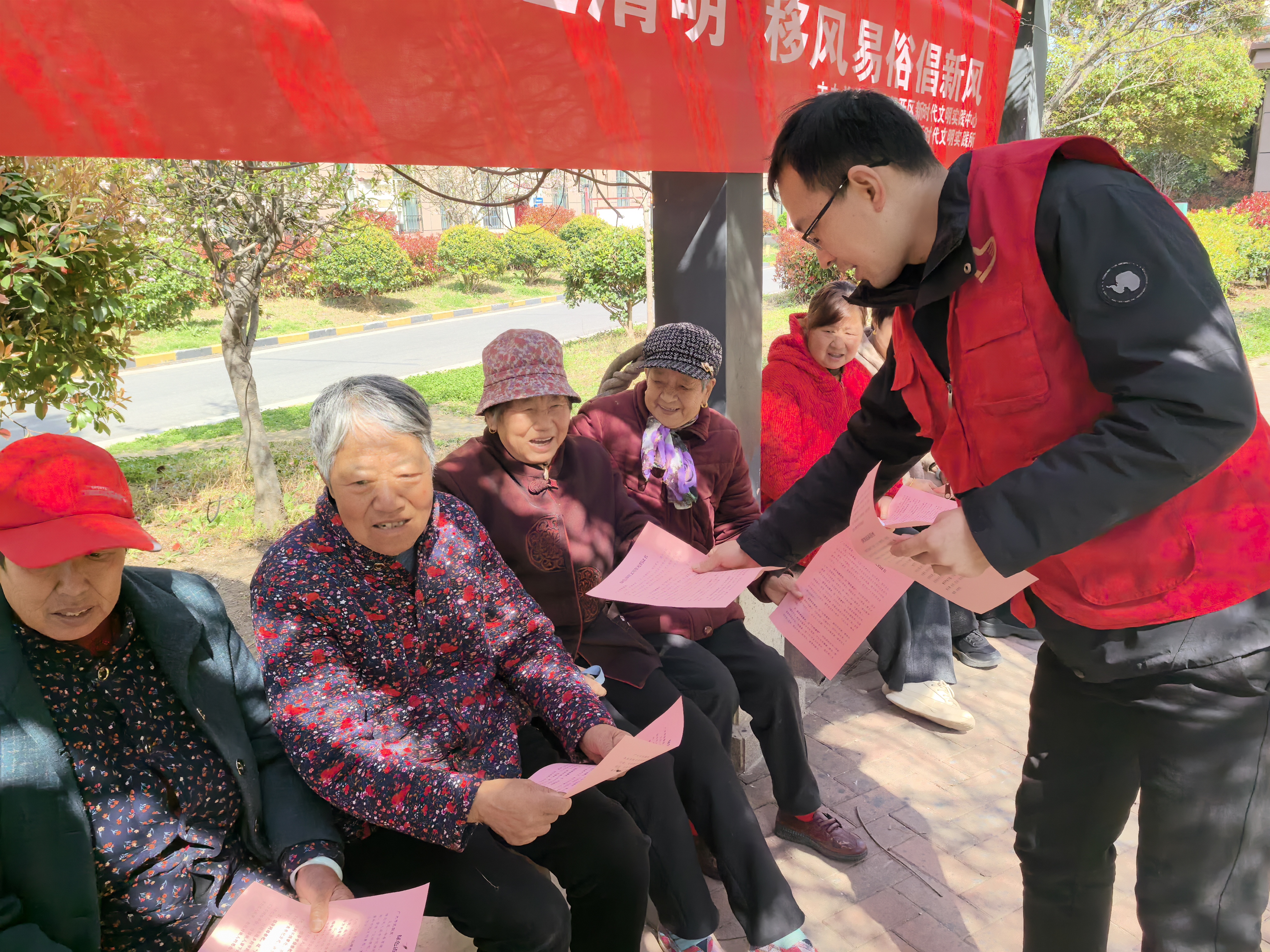 本次活动以“引导观念转变、减少环境隐患、弘扬文明新风、普及政策知识”为核心目标,旨在推动移风易俗落地见效。活动期间,在永思园园区前设立主场地,设置固定劝导点与鲜花置换处;同时各社区在辖区、园区周边交通要道设置分场地,实现祭扫服务与宣传引导全域覆盖。